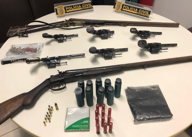 Durante a operação, realizada na madrugada da última sexta-feira (28), foram apreendidas duas espingardas, seis revólveres calibres 22, 36 e 38, além de munições de mesmo calibre e insumos para preparos de munições. “Algumas das armas estavam em um fundo falso de uma residência, localizada na zona rural de Iúna”, disse o delegado.