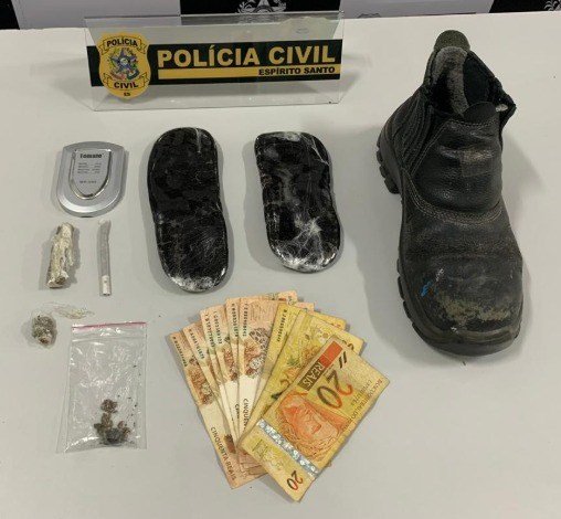 “Ao chegarmos até o local, encontramos os dois suspeitos dentro de um carro. No veículo apreendemos 12 gramas de maconha e uma balança de precisão, além de dois tabletes de Haxixe, em formato de palmilha de tênis, pesando meio quilo, no calçado do detido de 24 anos”, disse Bermond.